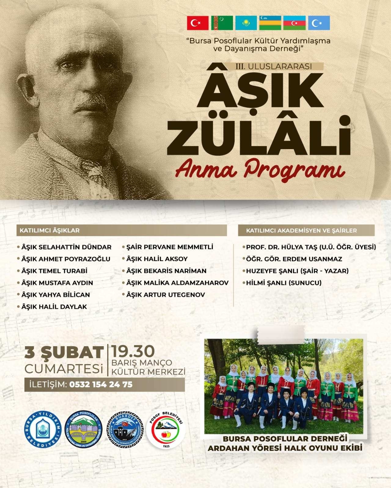 Yıldırım Belediyesi, Ardahan Dernekler Federasyonu ve Bursa Posoflular Derneğinin düzenlemiş olduğu 3. Uluslararası Âşık Zülali'yi Anma Programına Yönetim Kurulu olarak katılım sağladık.